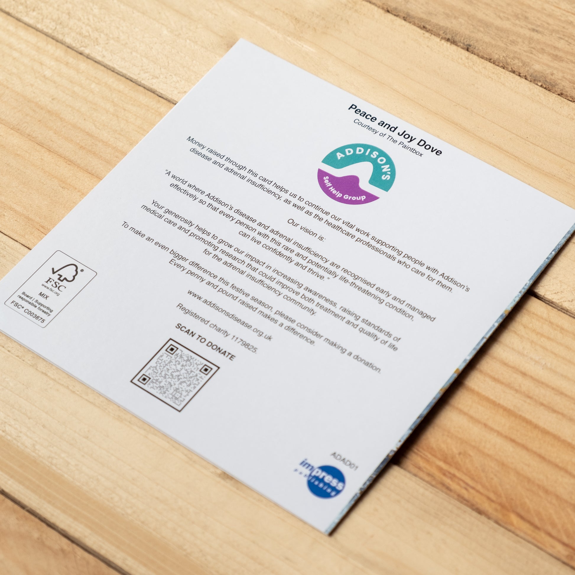 ✨ The back of every card includes the ADSHG logo, our vision and a thank you message.
